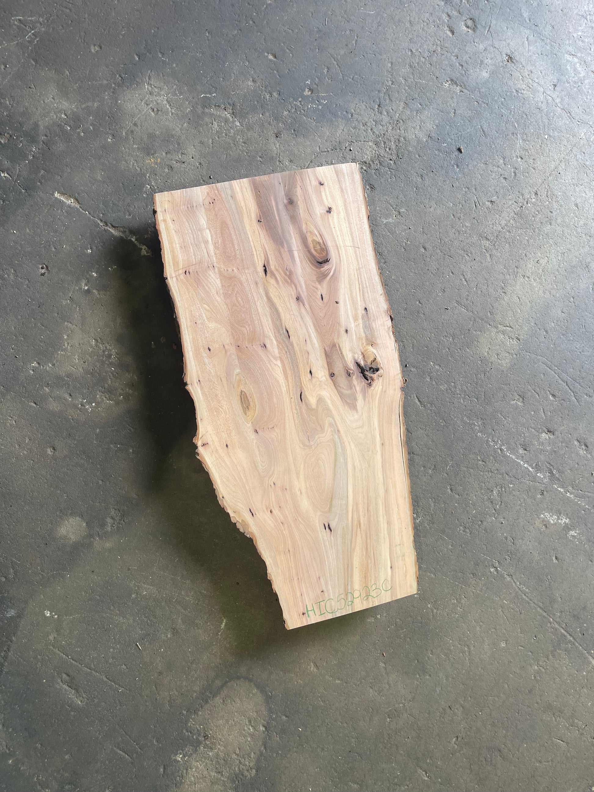 This Hickory Live Edge Slab measures 42" long by 20" at its widest point and is 1.5" thick. Dried in our iDry Kiln and surfaced by Eco Relics.