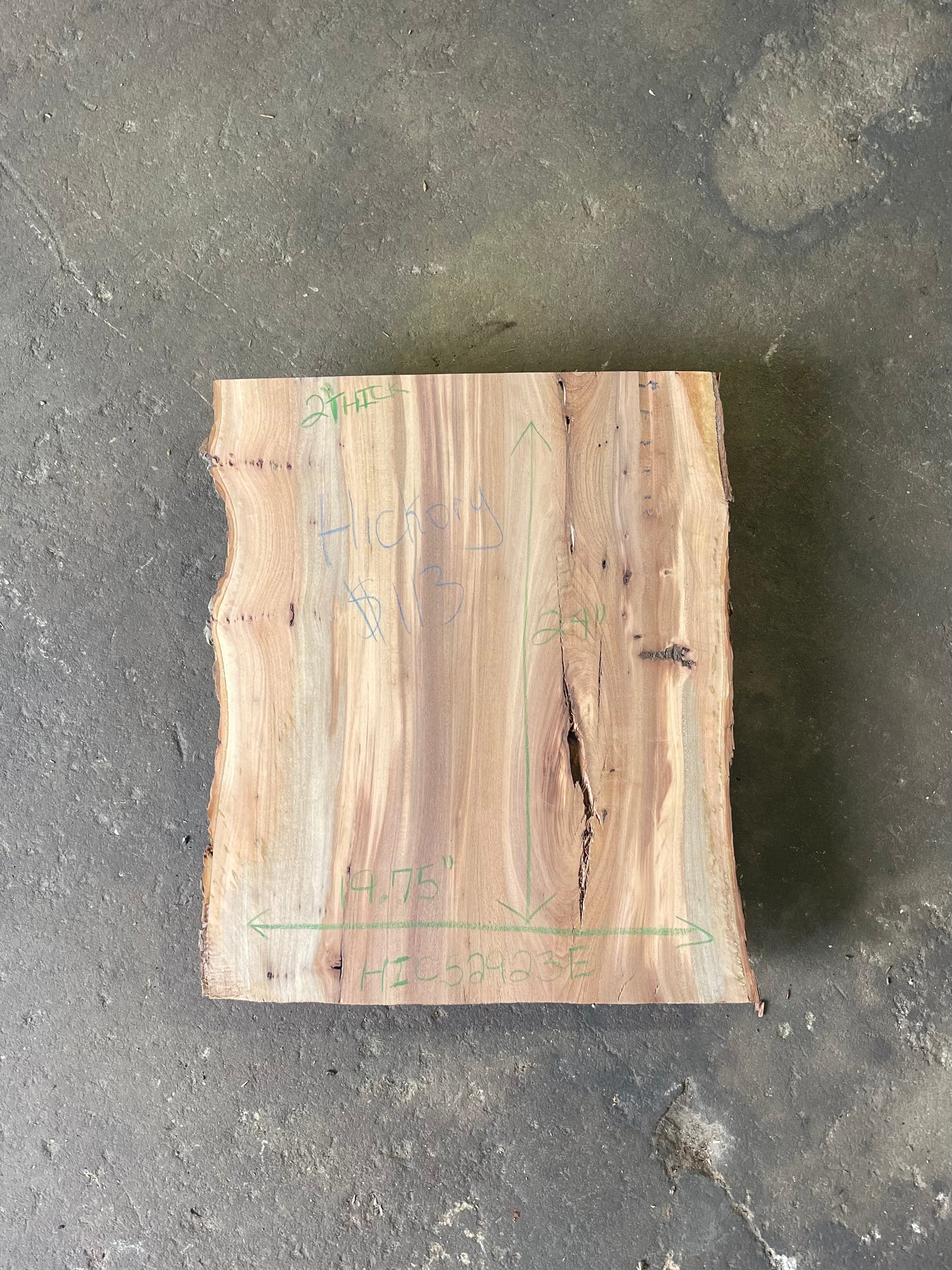 This Hickory Live Edge Slab measures 24" long by 19.75" at its widest point and is 2" thick. Dried in our iDry Kiln and surfaced by Eco Relics.