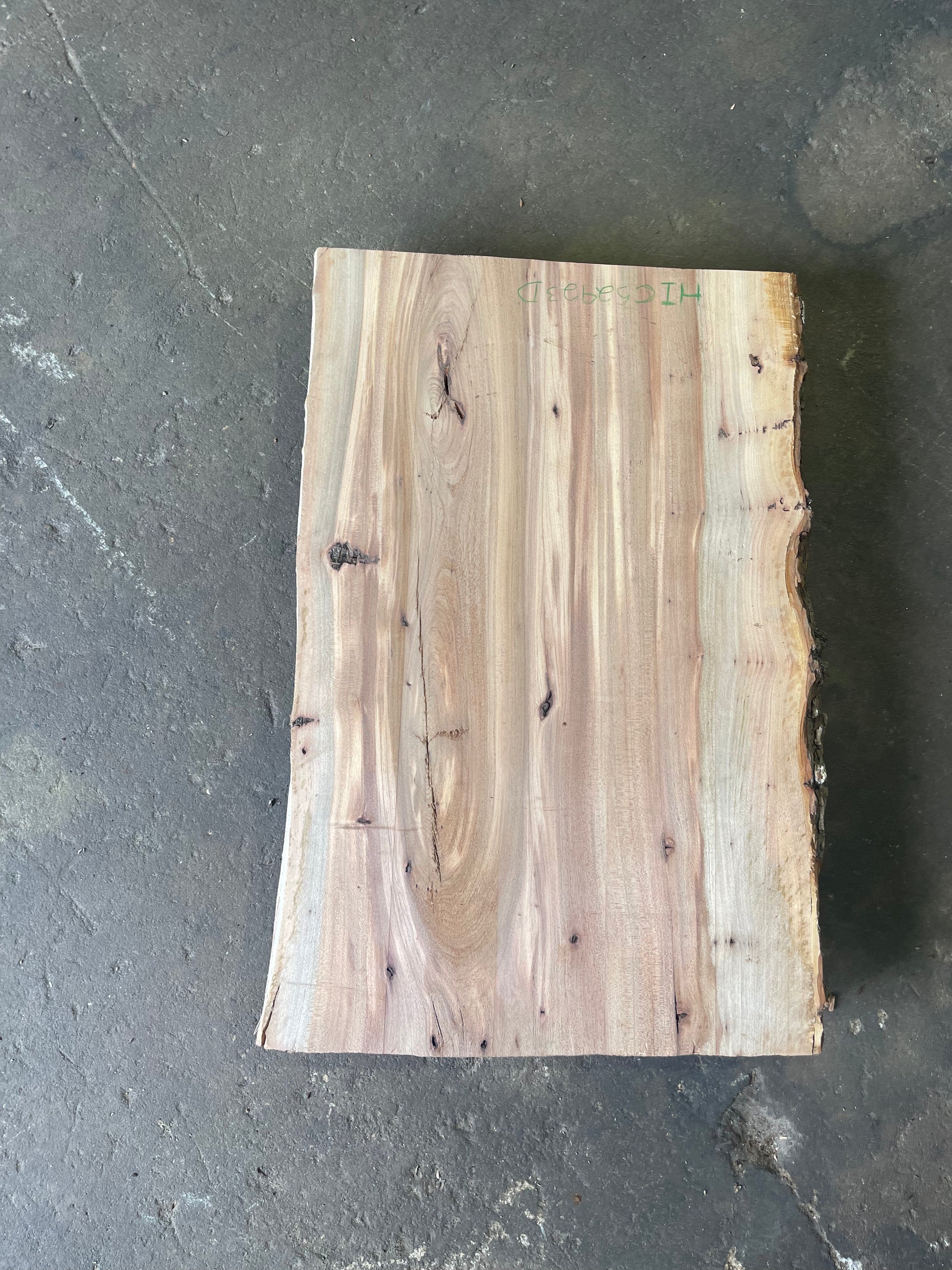 This Hickory Live Edge Slab measures 31.25" long by 20" at its widest point and is 1.75" thick. Dried in our iDry Kiln and surfaced by Eco Relics.