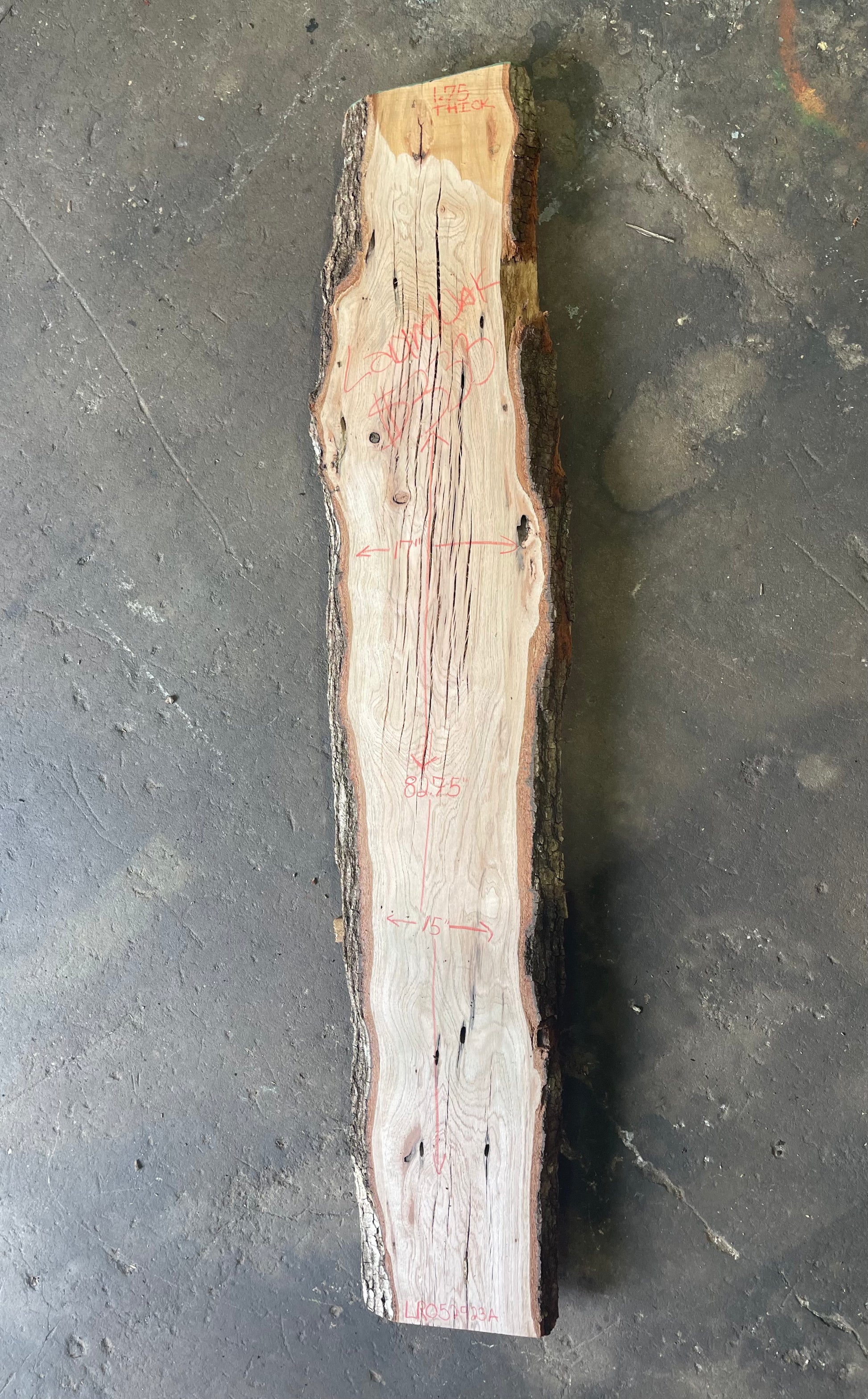 This Laurel Oak Live Edge Slab measures 82.75" long by 17" at its widest point and is 1.75" thick. Dried in our iDry Kiln and surfaced by Eco Relics.