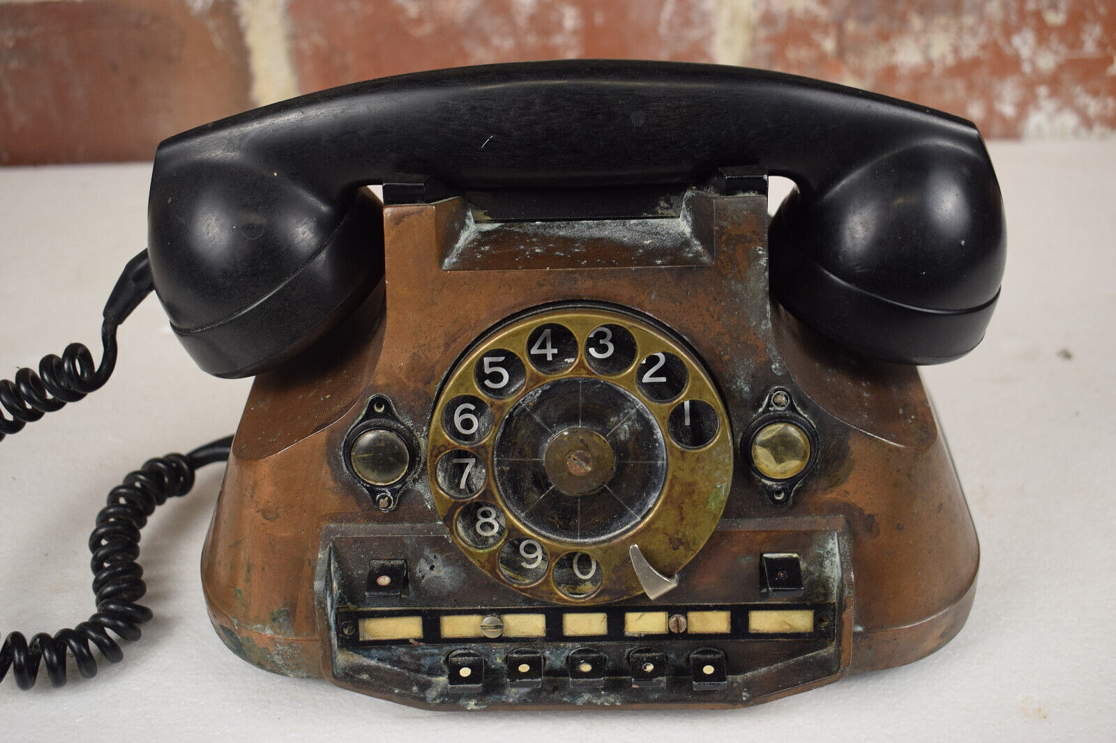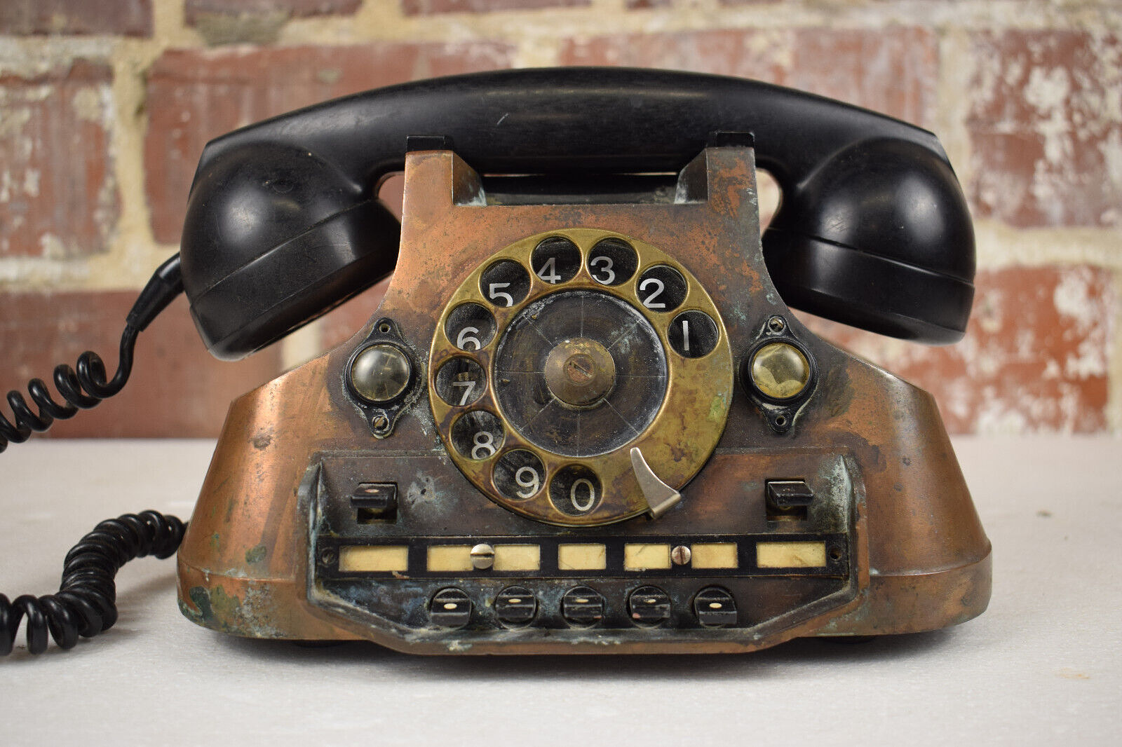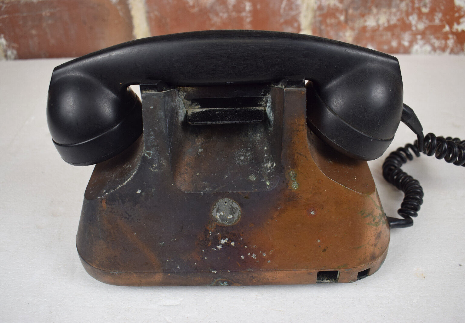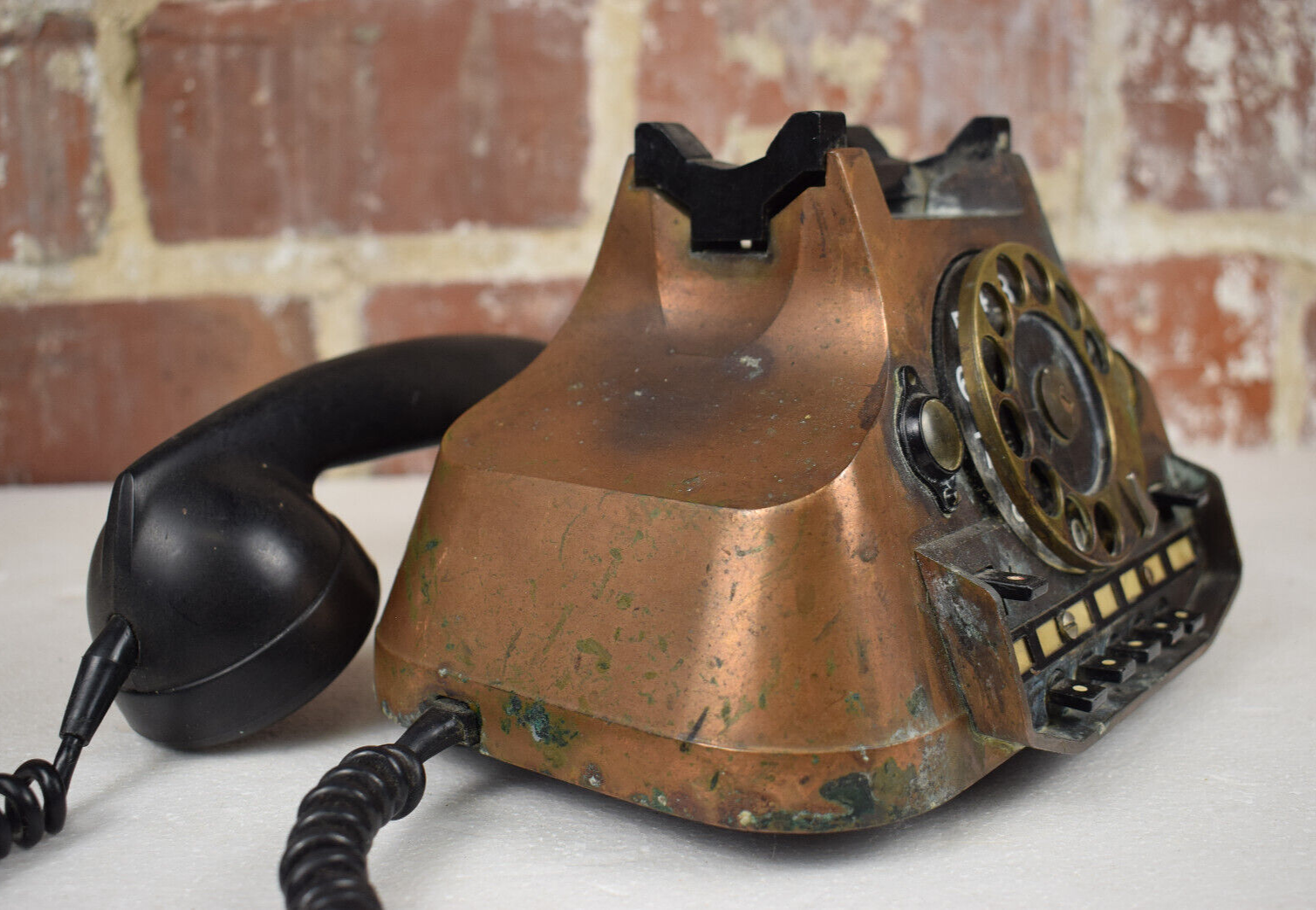 This antique rotary phone made of copper and bakelite is the perfect addition to your space! Shows some wear due to use and age. Please see photos for condition details. Has not been tested.