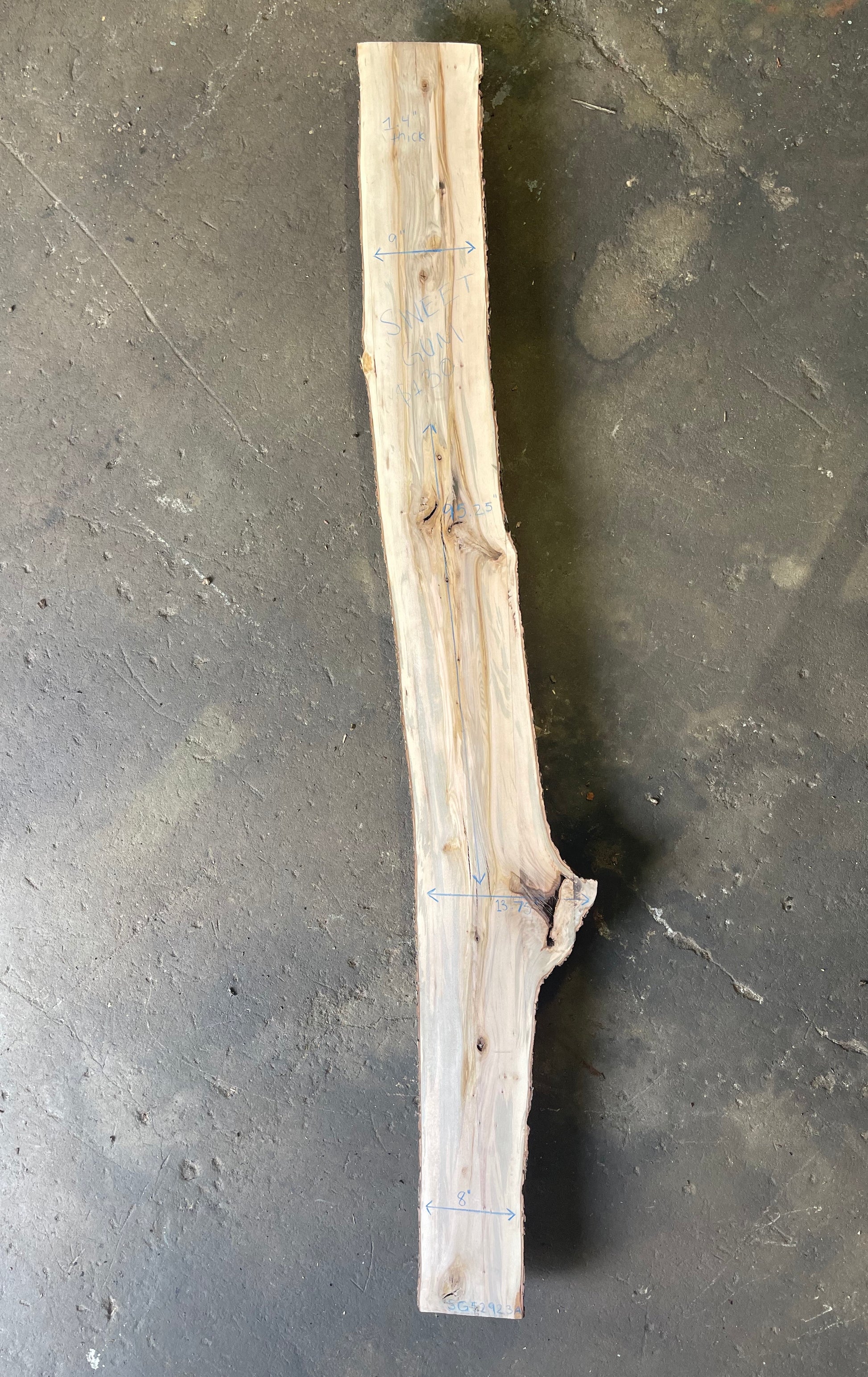 This Sweet Gum Live Edge Slab measures 95.25" long by 13.75" at its widest point and is 1.4" thick. Dried in our iDry Kiln and surfaced by Eco Relics.